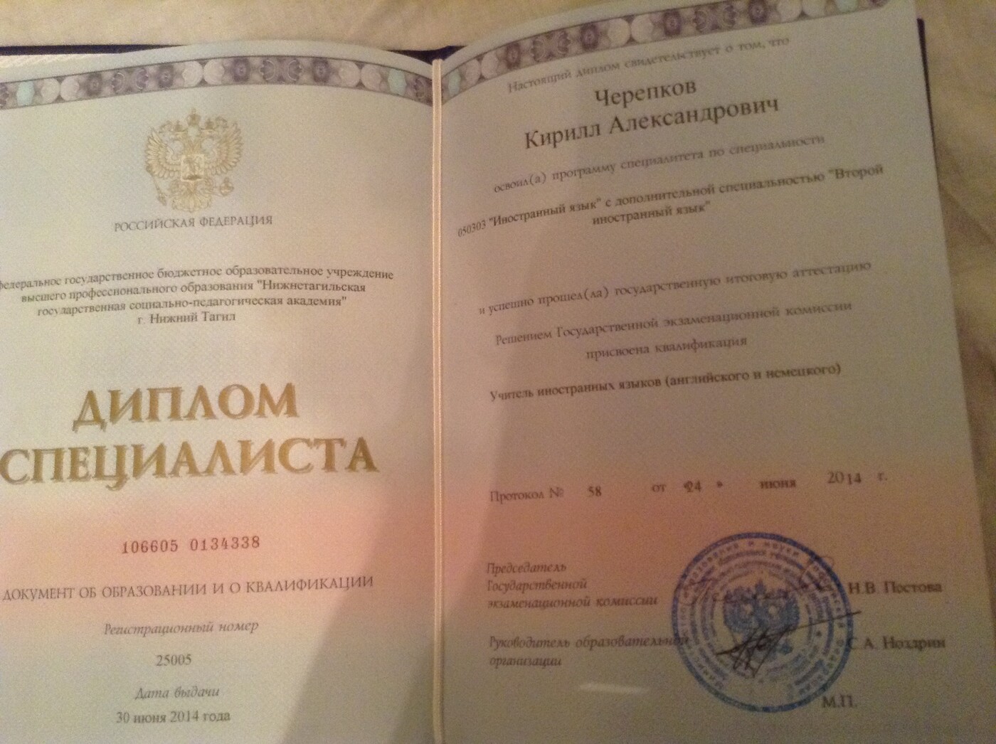 ФИЯ; Учитель двух иностранных языков; Специалист