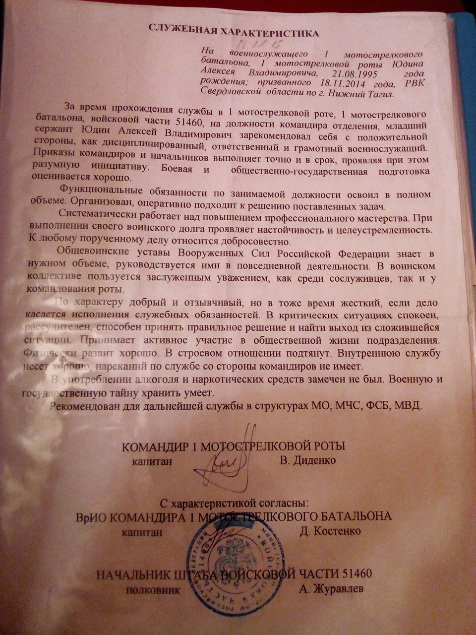 2014г - 2015г служба в вооружённых силах РФ, на должности командира отделения в звании младший сержант.